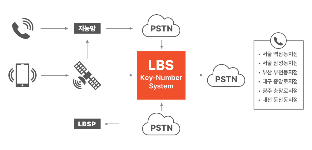 1588등 전국 대표번호를 이용하는 고객사에서 별도의 상담원 콜센터를 보유할 필요 없이 고객의 발신 위치에 따라 가장 가까운 지점으로 자동 연결해 주는 위치 기반 콜 라우팅 서비스입니다.